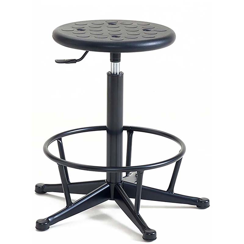Constructed with a polyurethane seat that can be washed clean and a steel fixed foor ring. Ideal for all industrial applications. Supplied with feet but castors can be fitted if requested at time of ordering.